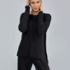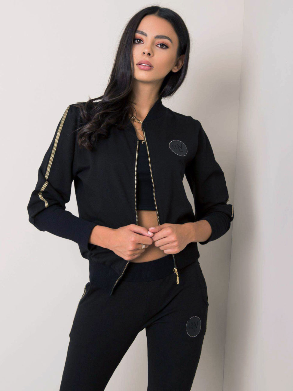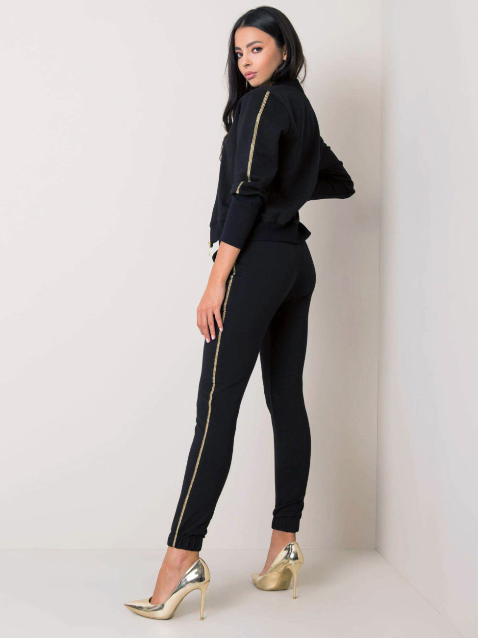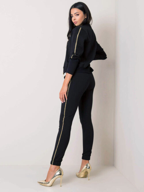 Elegantná tepláková súprava v čiernej farbe. Súprava sa skladá z mikiny na zips a teplákov. Je vyrobená z príjemného bavlneného materiálu a kvalitne spracovaná. Je to veľmi pohodlný kúsok, vhodný na bežné nosenie.