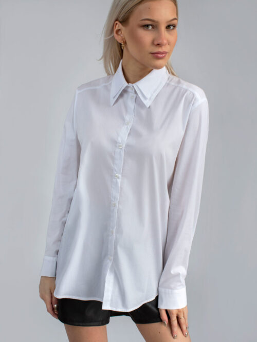 Kvalitná dámska košeľa v bielej farbe. Košeľa je rovného strihu, má dlhý rukáv a v prednej časti sa zapína na gombíky. Klasický kúsok, ktorý sa hodí k množstvu outfitov. Bielych košieľ proste nikdy nie je dosť!