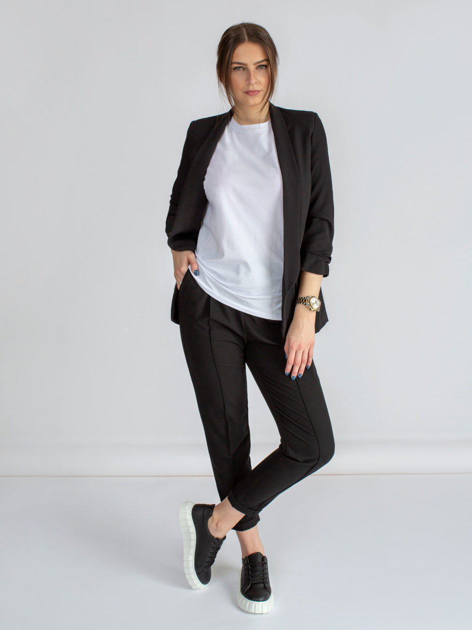 Zloženie: 75% polyester, 23% viskóza, 2% elastan