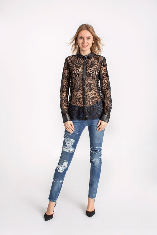 Čipkovaná dámska blúzka IMPERIAL v čiernej farbe.