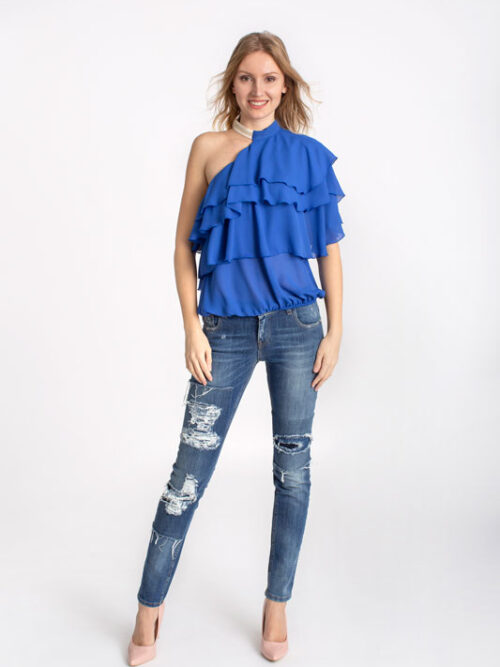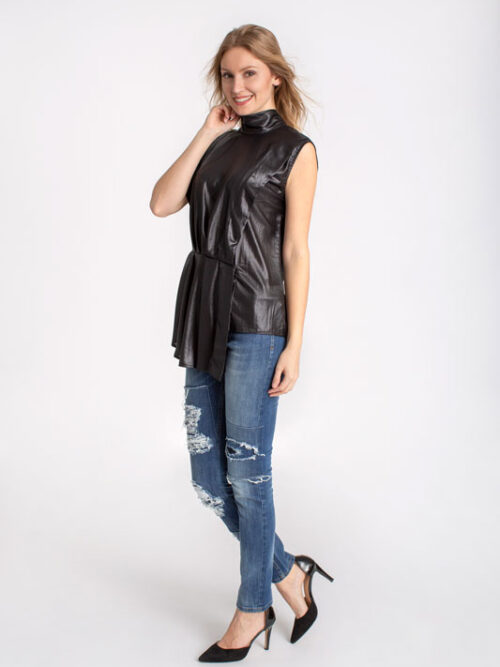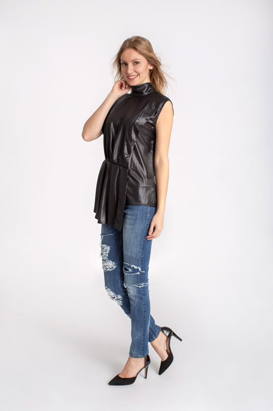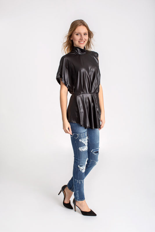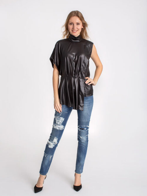 Dlhá asymetrická blúzka RINASCIMENTO v čiernej farbe.