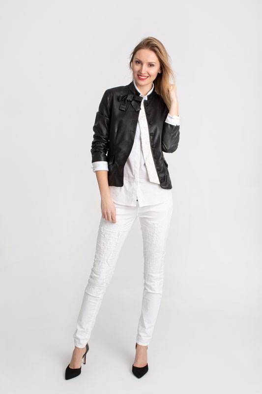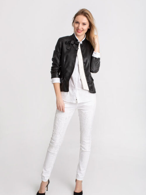 Dámska bunda s odopinateľnými manžetami BABYLON kombinovaná v prednej časti, peknou bielou čipkou.
