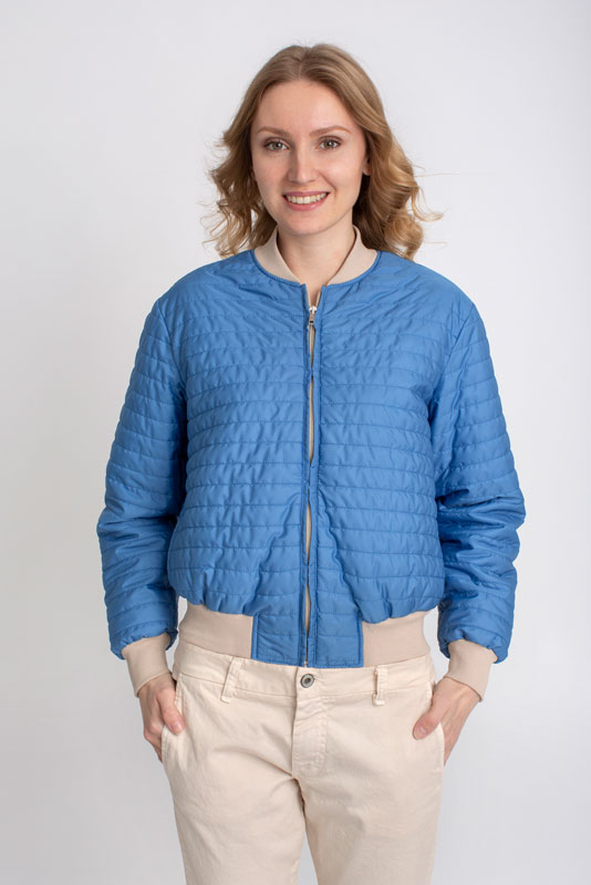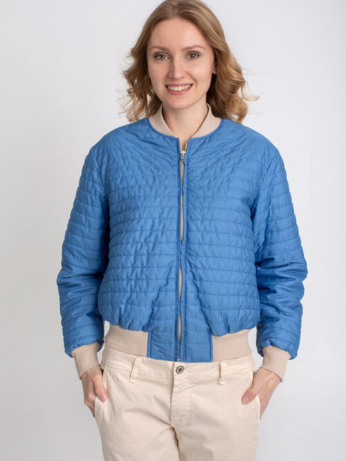 Dámska krátka bomberová bunda PLEASE. Krátky strih a prešívaná látka, je nová interpretácia klasickej bomberovej bundy. Nájdete na nej typické prvky ako je stojačik, ale aj manžety na rukávoch a v pase. Doplnená je aj vreckami.