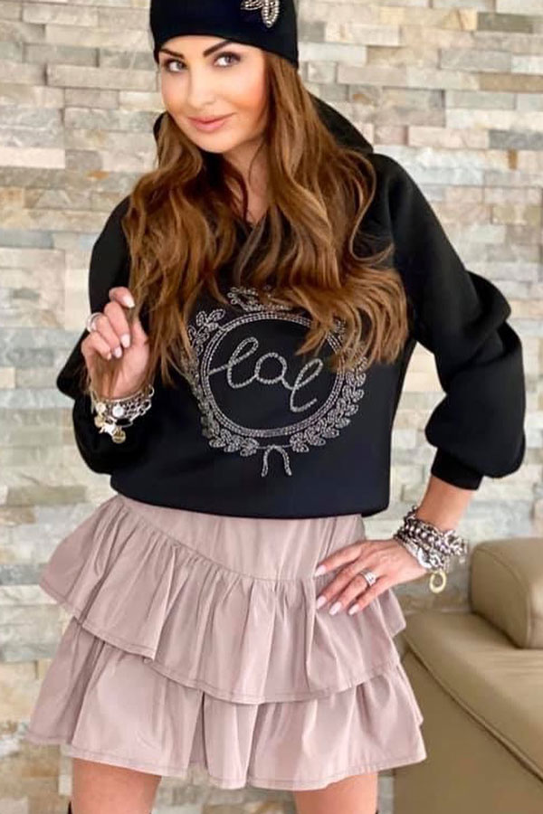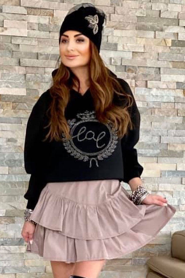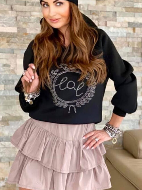 Dámska mikina s kapucňou BY O LA LA v čiernej farbe.