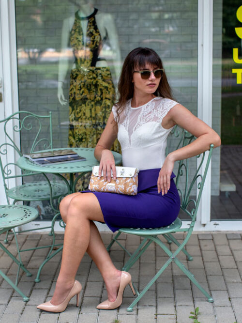 Dámska puzdrová sukňa RINASCIMENTO vo fialovej farbe.