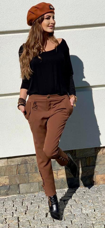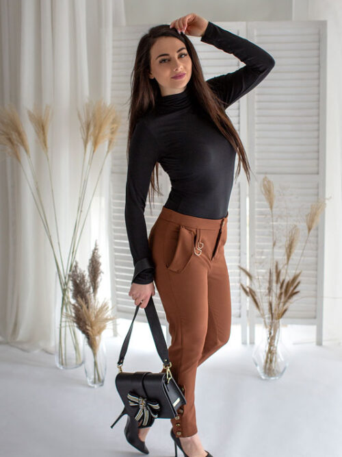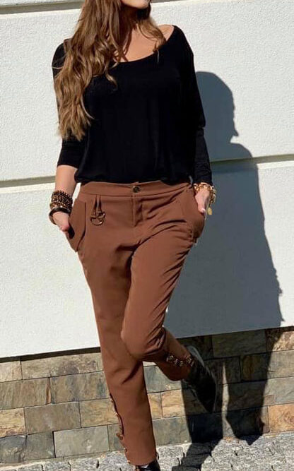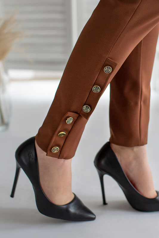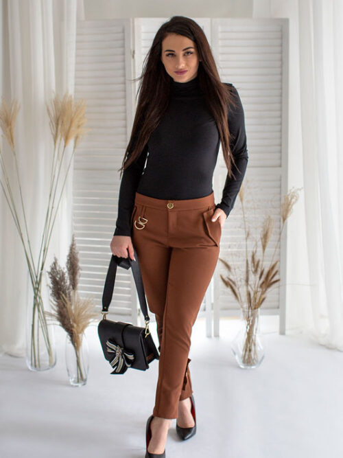 Dámske nohavice BY O LA LA v hnedej farbe.