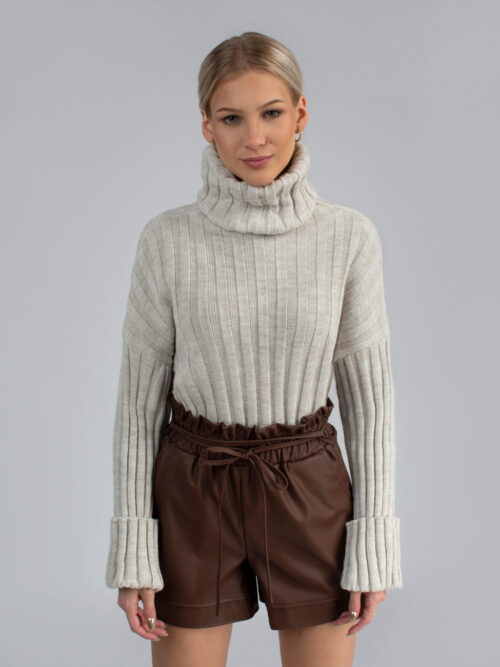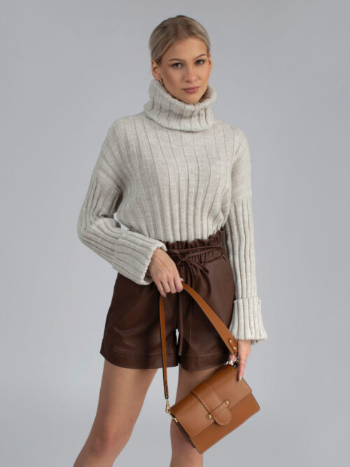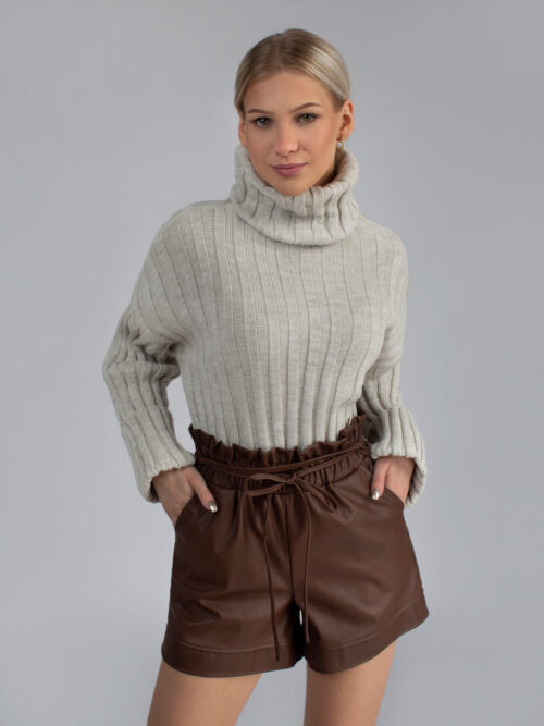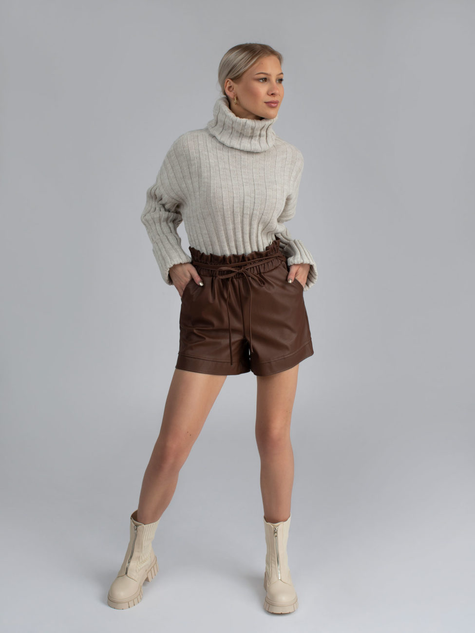 Koženkové šortky v hnedej farbe sú trendy kúskom tejto sezóny. V páse majú gumu, čo zaručuje pohodlie pri ich nosení.