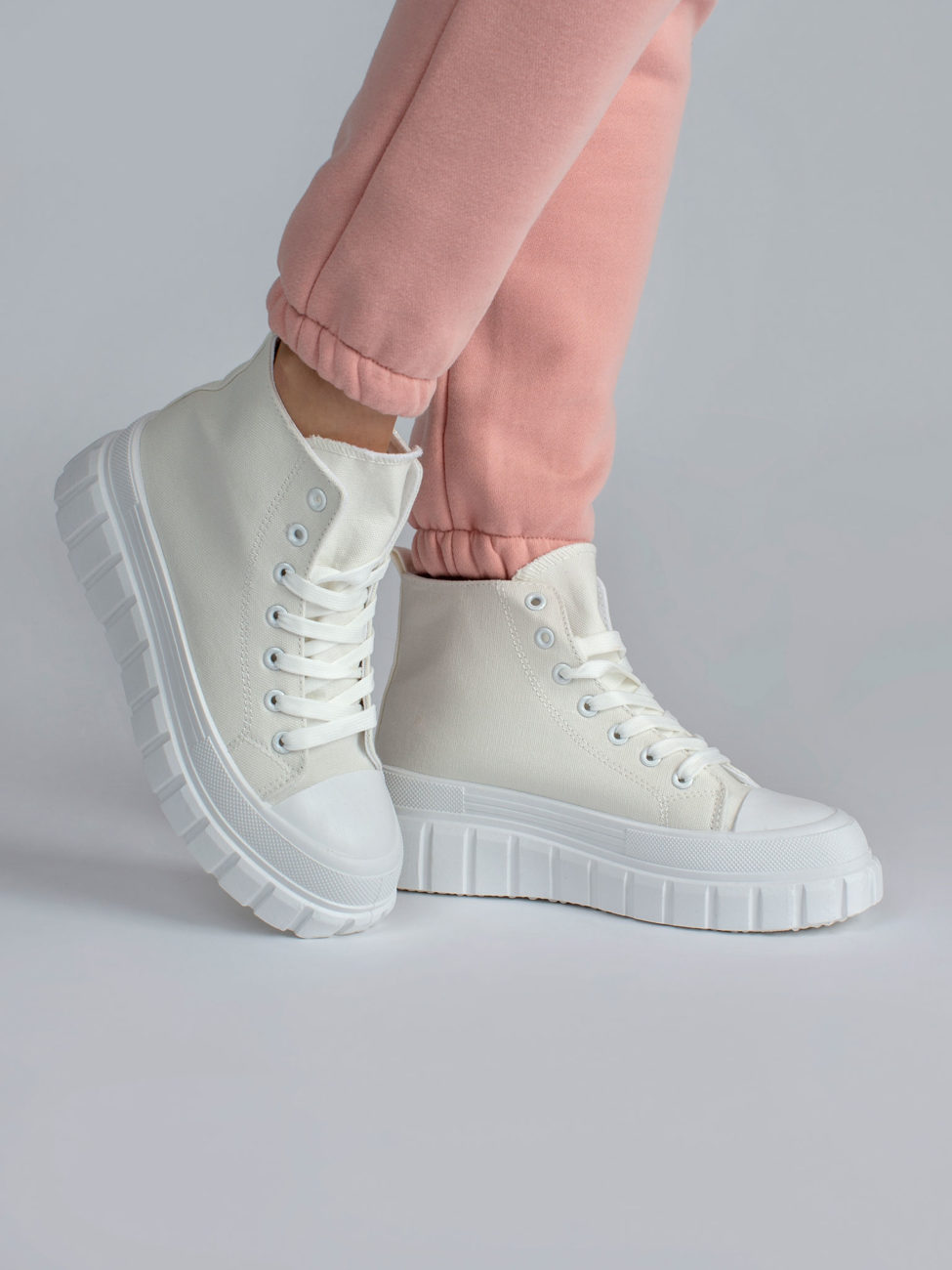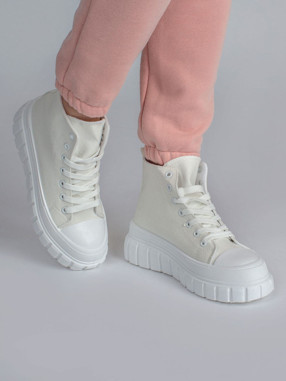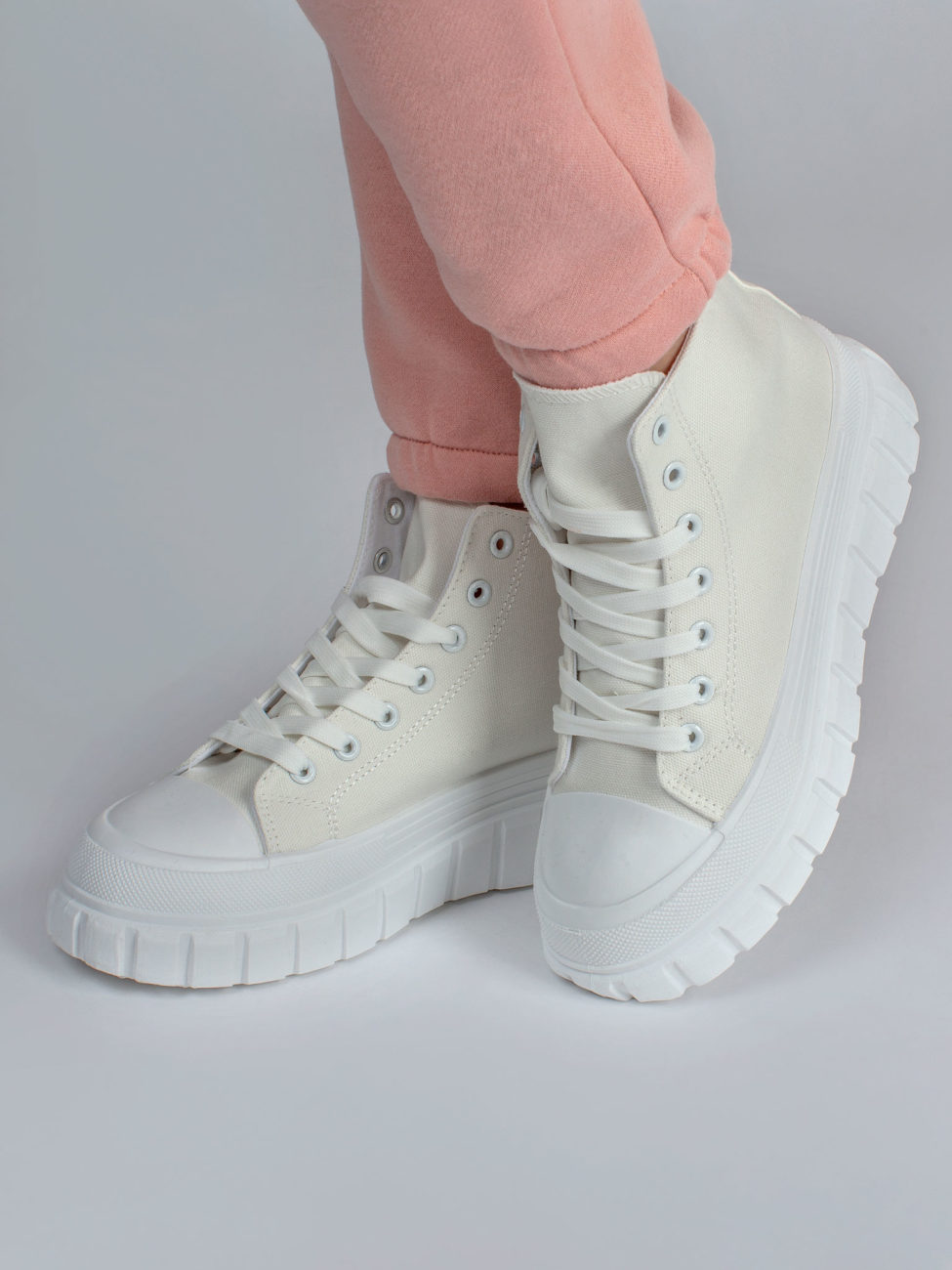 Dámske plátenné tenisky vysoké v bielej farbe na gumovej podrážke. Basic kúsok, ktorý rozhodne musíš mať!