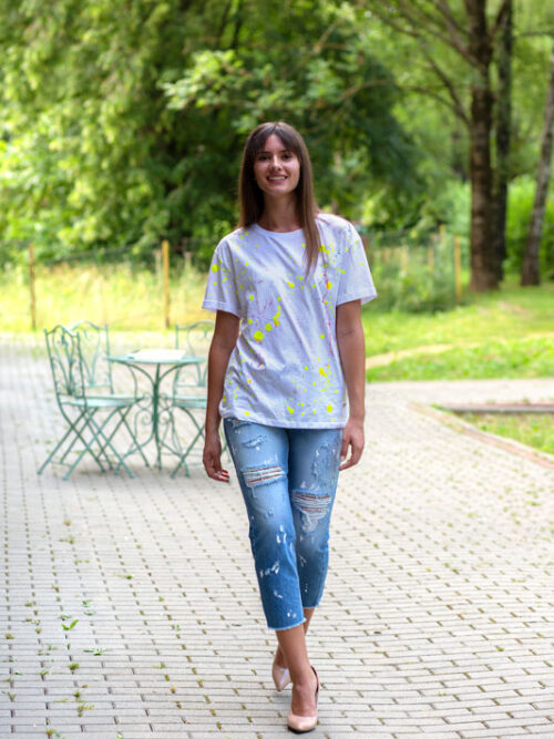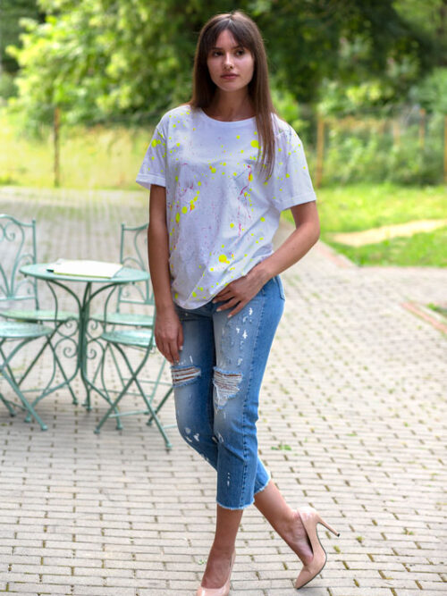 Dámske rifle potrhané PLEASE v modrej farbe.