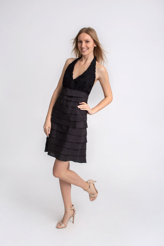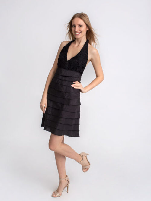 Dámske šaty krátke hodvábne s volánmi SANDRO FERRONE v čiernej farbe.