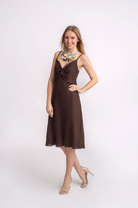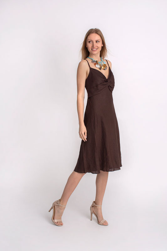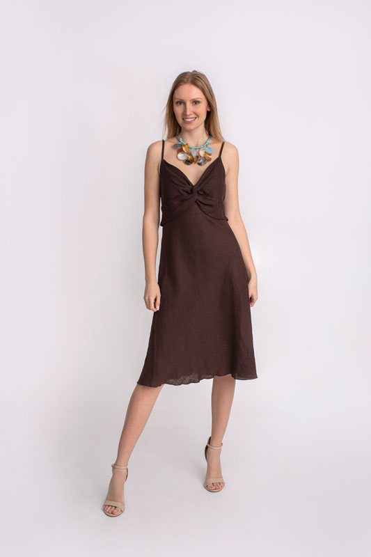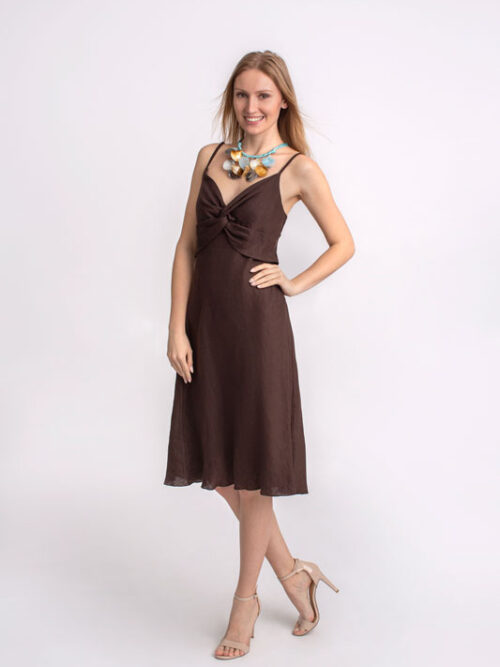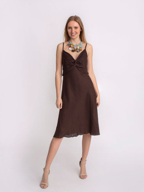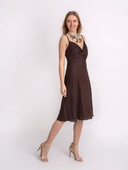 Dámske šaty krátke na ramienka SANDRO FERRONE v hnedej farbe.