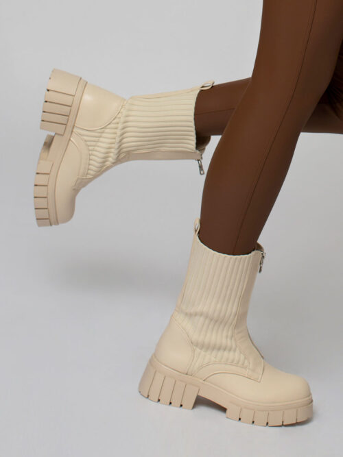 Štýlové workery v béžovej farbe na vyššej podrážke. Zvŕšok topánok je vyrobený z elastického textilu, ktorý sa prisbôsobí aj na širšiu nohu. Workery sú vyrobené z vysoko kvalitného materiálu a navrhnuté podľa najnovších módnych trendov. Efektný strieborným zips vpredu, zaisťuje pohodlné obúvanie. Štýlový kúsok, ktorý sa dá nosiť celoročne.