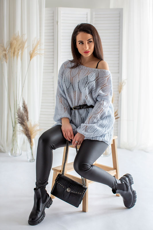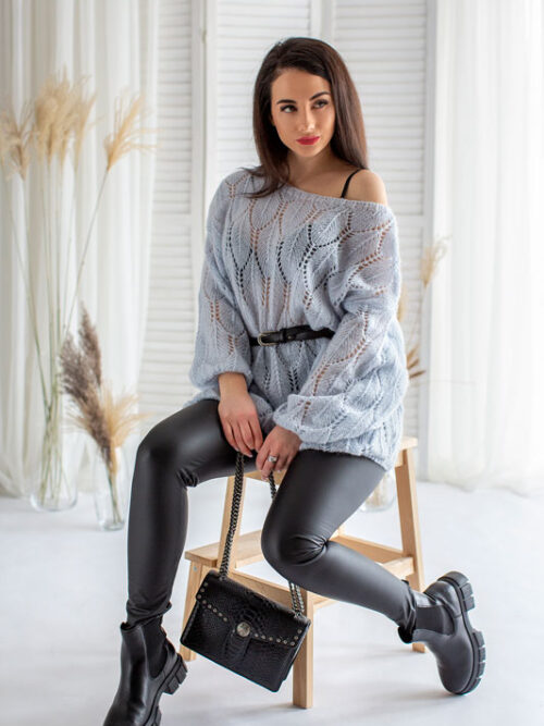 Krásny svetlo modrý sveter. Sveter je vyrobený z príjemného a mäkulinkého materiálu, jemný ako pavučinka. Budete sa v ňom cítiť veľmi pohodlne. Je to kúsok pre každú romantickú ženu. Doplnený je tiež jemným dierkovaním, ktoré je v tejto momentálne veľkým trendom. Skvele sa kombinuje a krásne oživí vaše outfity.