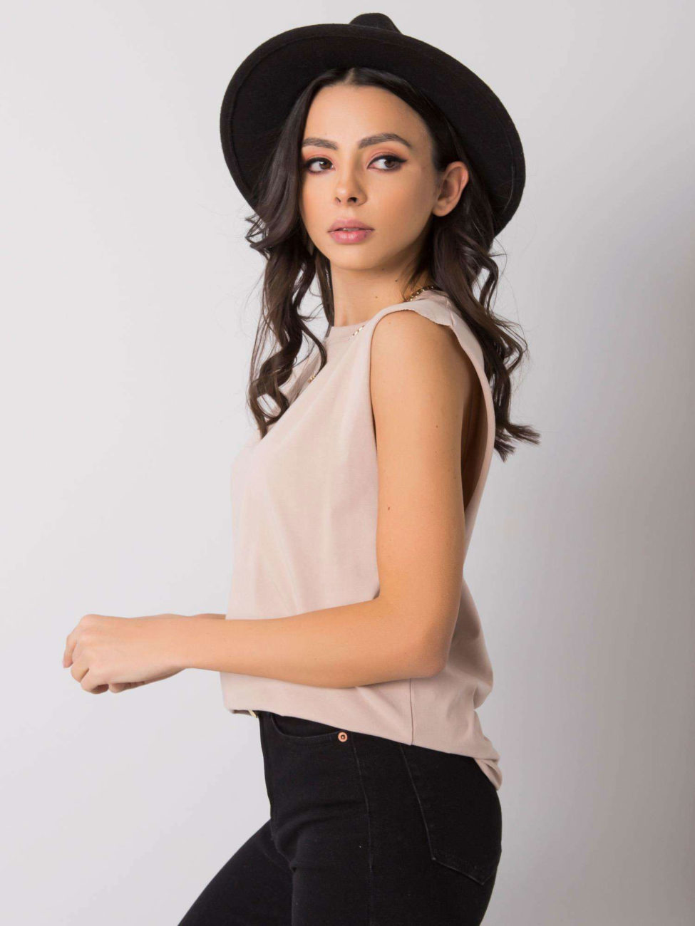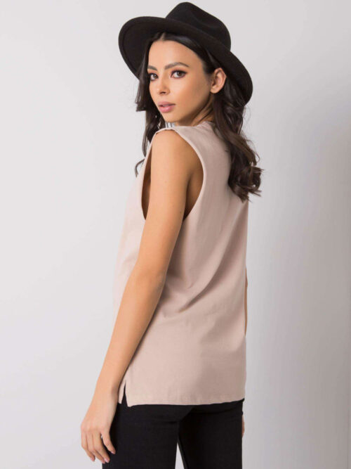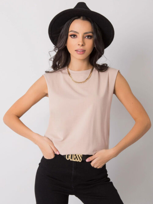 Dámsky top bez rukávov v béžovej farbe. Základný univerzálny kúsok, ktorý sa hodí takmer ku každému štýlu a uľahčuje dotvoriť akýkoľvek outfit. Tento jednoduchý kúsok nikdy nevyjde z módy, pretože predstavuje klasický štýl, ktorý využiješ na mnoho príležitostí. Top je bez rukávov a je vyrobený z príjemného materiálu s vysokým obsahom bavlny. Jednoducho kúsok, ktorý nesmie chýbať v tvojom šatníku.
