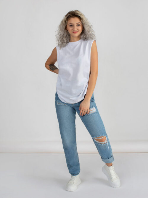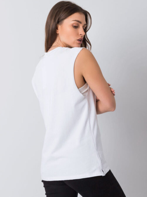 Dámsky top bez rukávov v bielej farbe. Základný univerzálny kúsok, ktorý sa hodí takmer ku každému štýlu a uľahčuje dotvoriť akýkoľvek outfit. Tento jednoduchý kúsok nikdy nevyjde z módy, pretože predstavuje klasický štýl, ktorý využiješ na mnoho príležitostí. Top je bez rukávov a je vyrobený z príjemného materiálu s vysokým obsahom bavlny. Jednoducho kúsok, ktorý nesmie chýbať v tvojom šatníku.