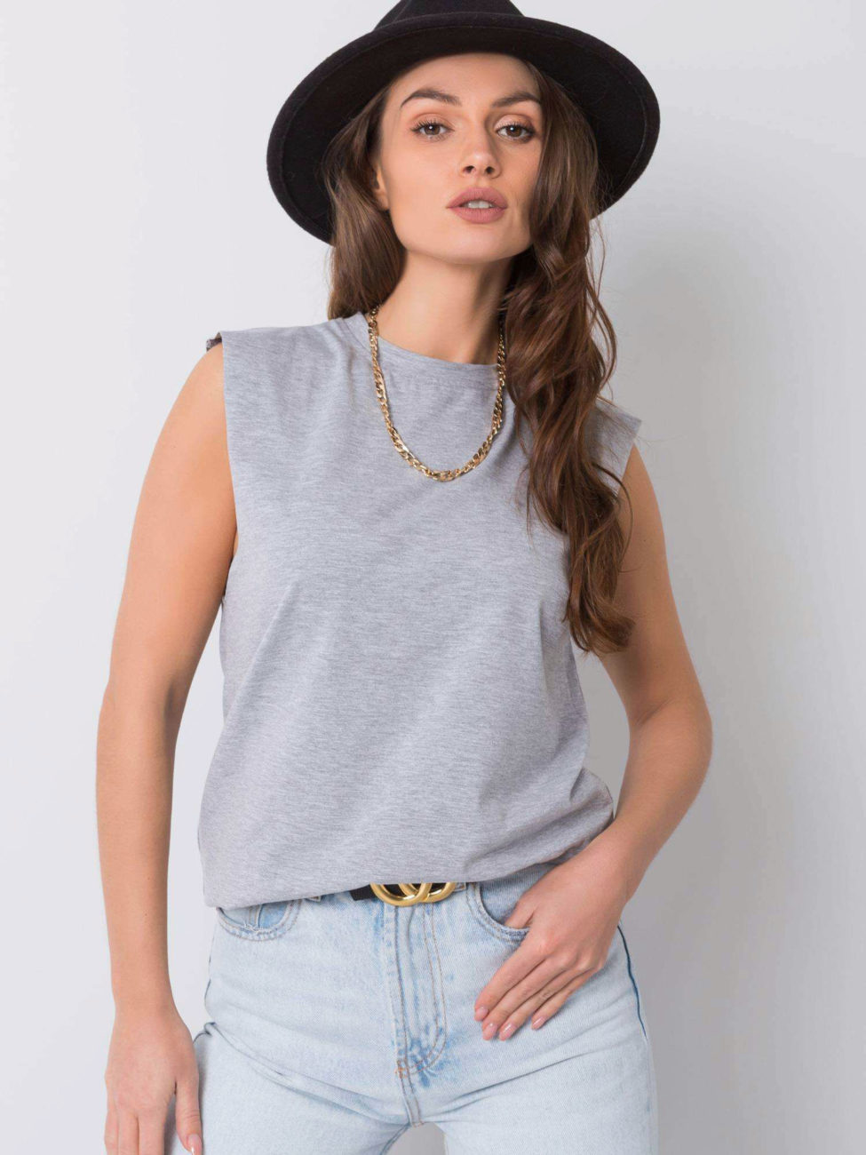 Dámsky top bez rukávov v sivej farbe. Základný univerzálny kúsok, ktorý sa hodí takmer ku každému štýlu a uľahčuje dotvoriť akýkoľvek outfit. Tento jednoduchý kúsok nikdy nevyjde z módy, pretože predstavuje klasický štýl, ktorý využiješ na mnoho príležitostí. Top je bez rukávov a je vyrobený z príjemného materiálu s vysokým obsahom bavlny. Jednoducho kúsok, ktorý nesmie chýbať v tvojom šatníku.