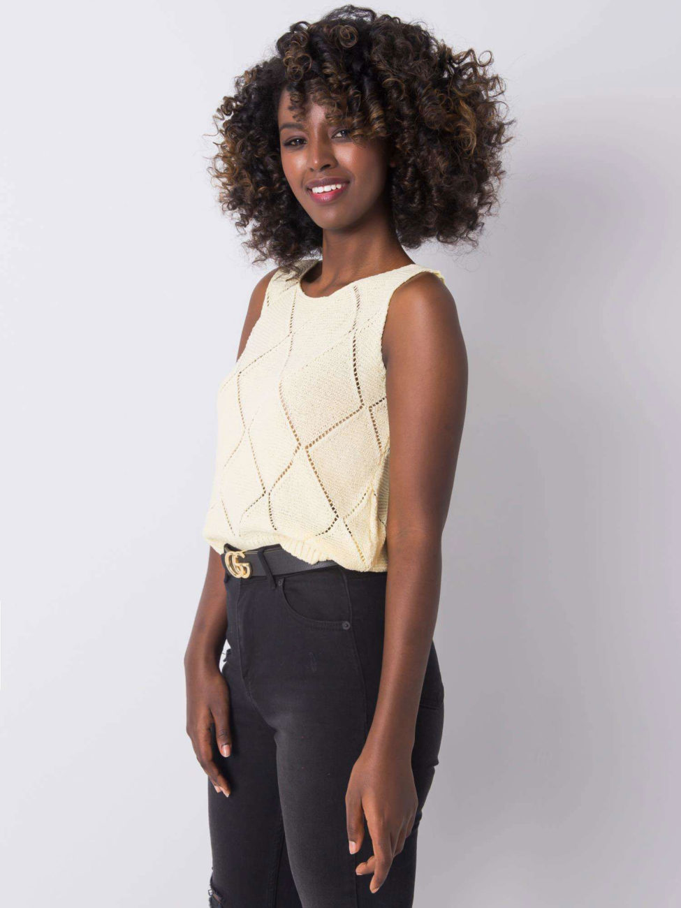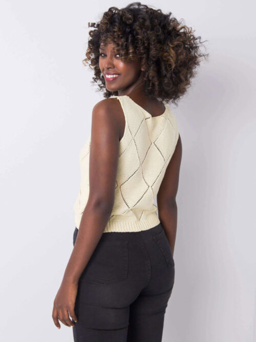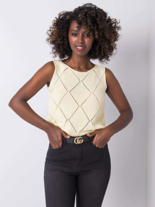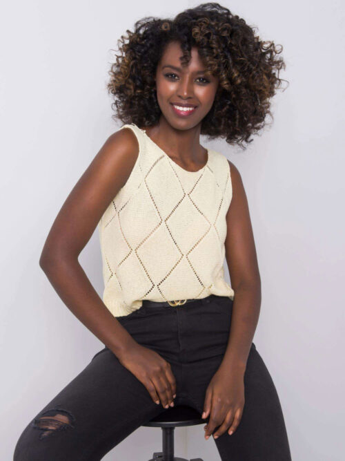 Štýlový pletený top bez rukávov v príjemnej svetlo žltej farbe. Top je skvele kombinovateľný kúsok, ktorý využiješ v množstve outfitov. Je kvalitne spracovaný, vyrobený z príjemného pleteného materiálu. Tento kúsok sa skvele hodí k elegantnejšiemu oblečeniu ale aj k rifliam, šortkám alebo k sukni. Trendy kúsok, ktorý si určite zamiluješ.