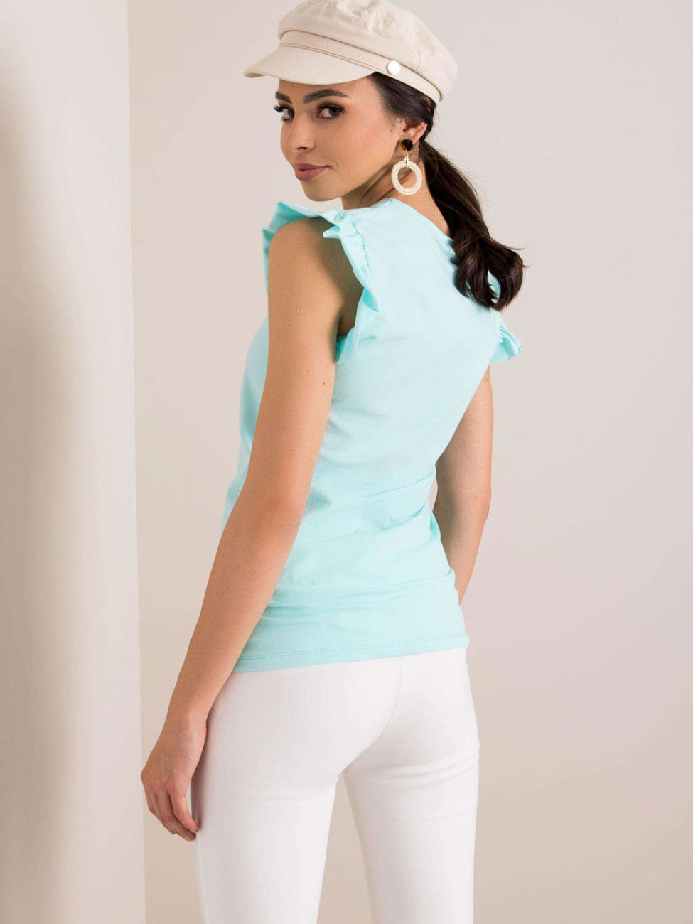Očarujúci mentolový top s jemnými volánikmi okolo ramien je ideálnou voľbou pre teplé letné dni. Top je skvele kombinovateľný kúsok, ktorý využiješ v množstve outfitov. Je kvalitne spracovaný, vyrobený z príjemného materiálu v jemnej pastelovej farbe. Tento kúsok sa skvele hodí k elegantnejšiemu oblečeniu ale aj k šortkám, rifliam alebo k sukni. Trendy kúsok, ktorý si určite zamiluješ.