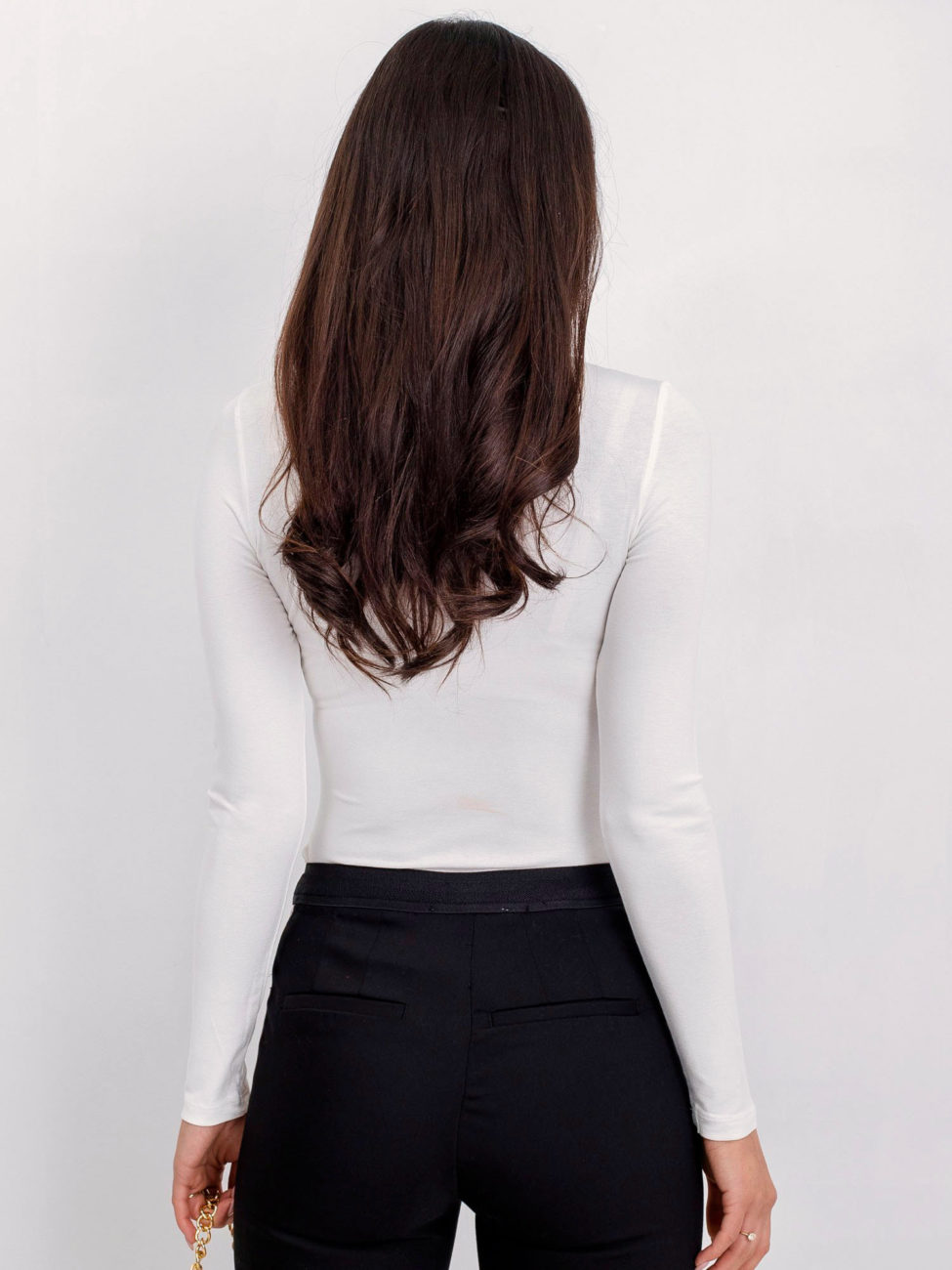 Dámsky top s polorolákom v smotanovej farbe. Hladký top je určite jedným z najviac potrebných vecí v každom šatníku ženy. Je to univerzálny kúsok, ktorý sa hodí takmer ku každému štýlu a uľahčuje dotvoriť outfit. Tento jednoduchý kúsok nikdy nevyjde z módy, pretože predstavuje klasický štýl, ktorý využiješ na mnoho príležitostí. Top má dlhý rukáv a polorolák, ktorý mu dodáva elegantný vzhľad. Je vyrobený z príjemného materiálu s vysokým obsahom bavlny. Jednoducho kúsok, ktorý nesmie chýbať v tvojom šatníku. Modelka má výšku 168cm, hrudník 89cm, pás 60cm, boky 91cm a má na sebe veľkosť S.