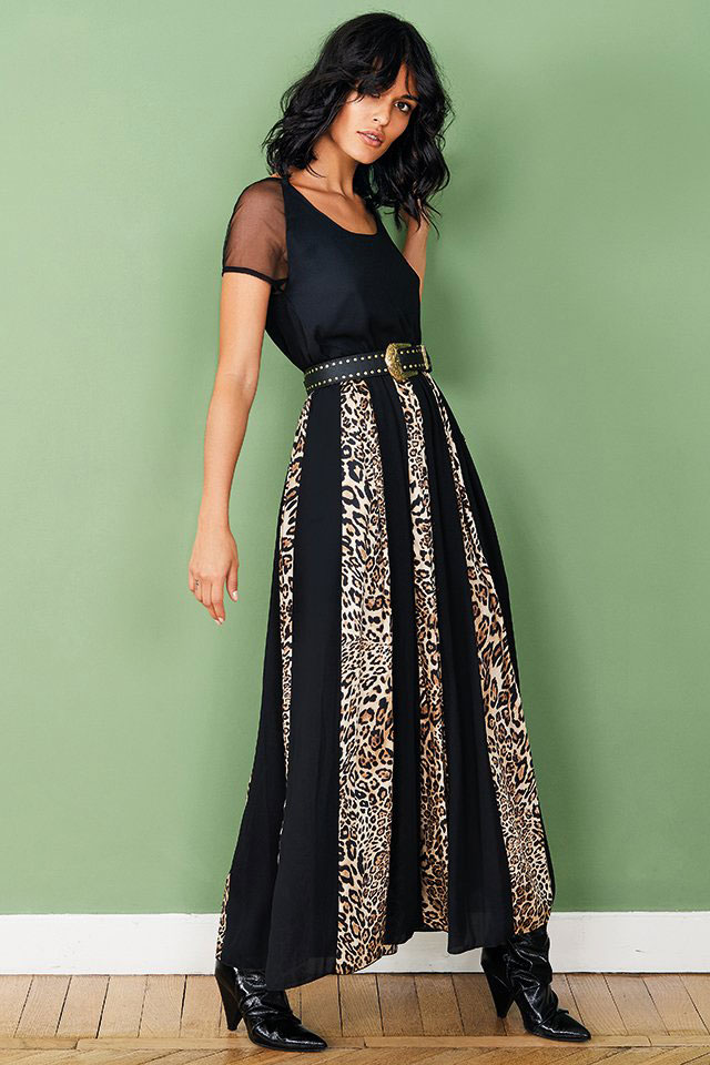 Dlhé šaty RINASCIMENTO vás upútajú dlhou sukňou so zvieracím vzorom. Veľmi pekné na ples alebo inú spoločenskú udalosť.