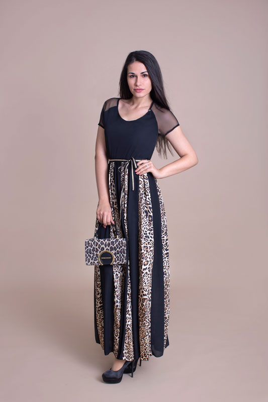 Dlhé šaty RINASCIMENTO vás upútajú dlhou sukňou so zvieracím vzorom. Veľmi pekné na ples alebo inú spoločenskú udalosť.