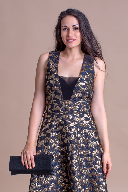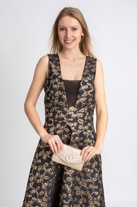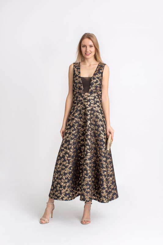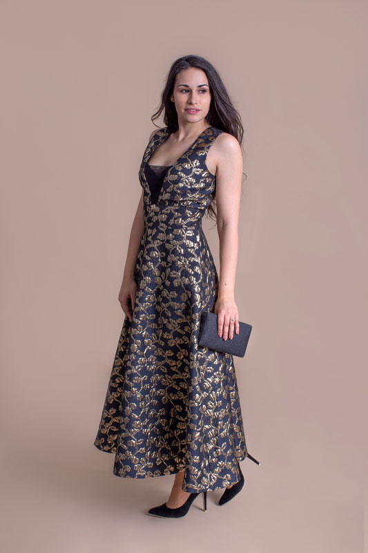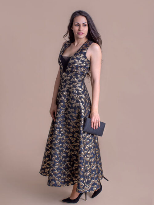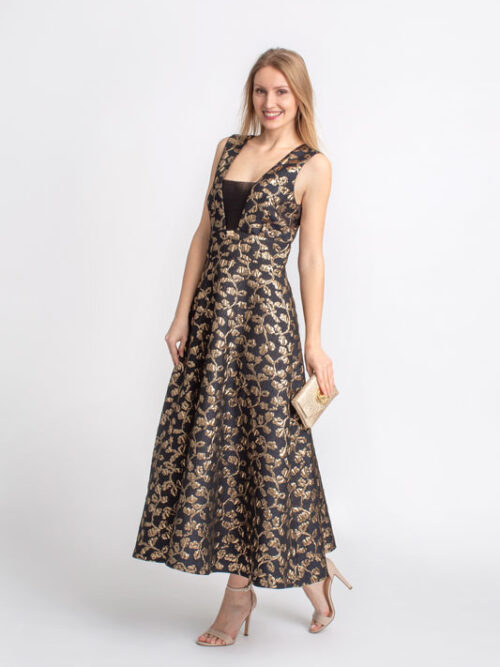 Dlhé spoločenské šaty ROBERTA BIAGI v čierno zlatej farbe.
