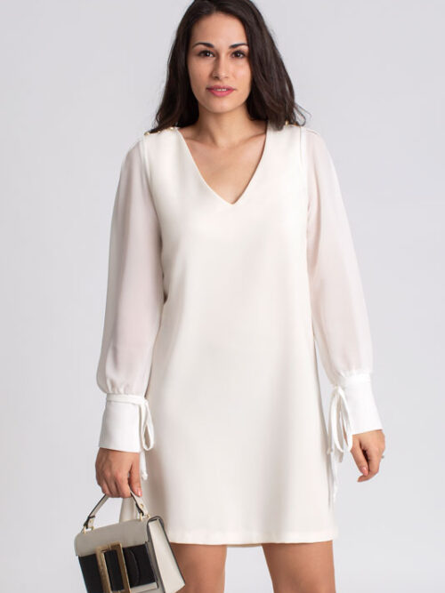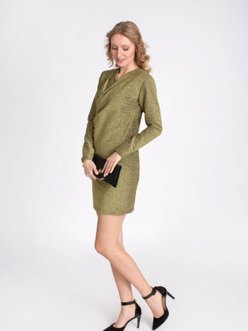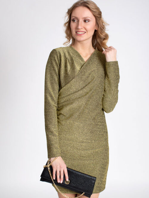 Lurexové minišaty v zlatej farbe, značka PLEASE. Šatičky v zavinovacom vzhľade sú na každej oslave absolútnym pútačom.