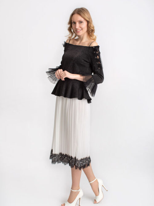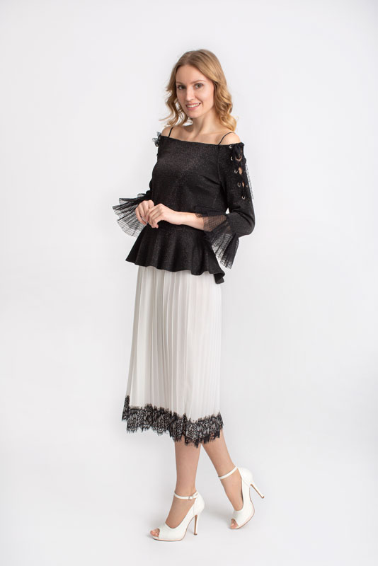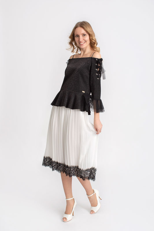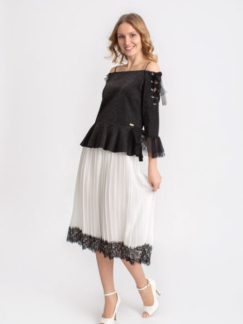 Luxusná blúzka na ramená BABYLON s trblietavým lurexom.