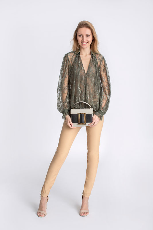 Luxusná dámska blúzka čipkovaná BABYLON v zelenej farbe.