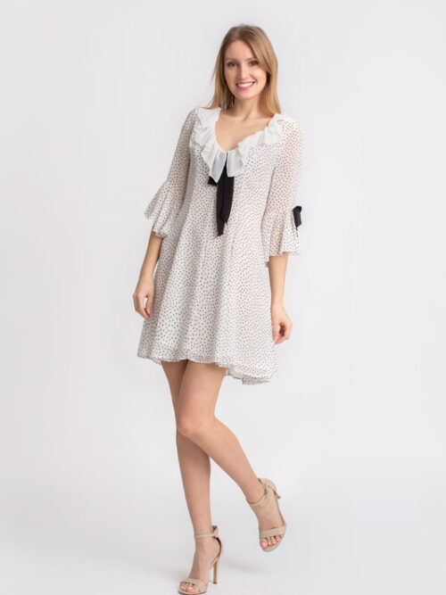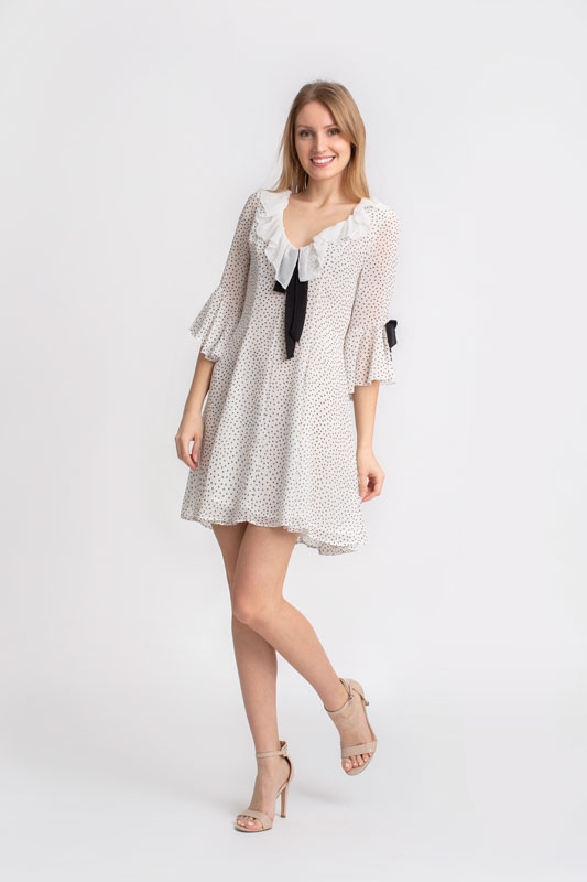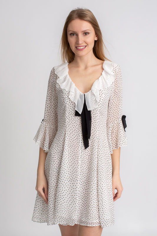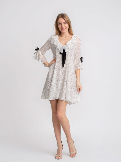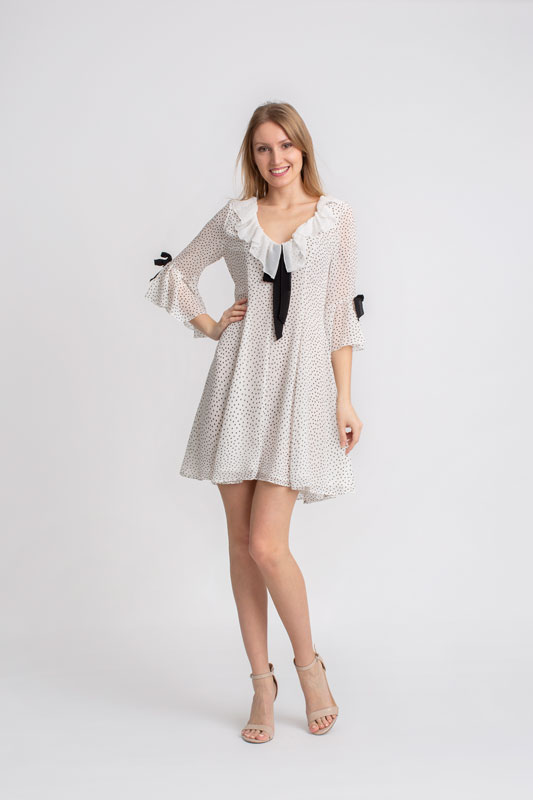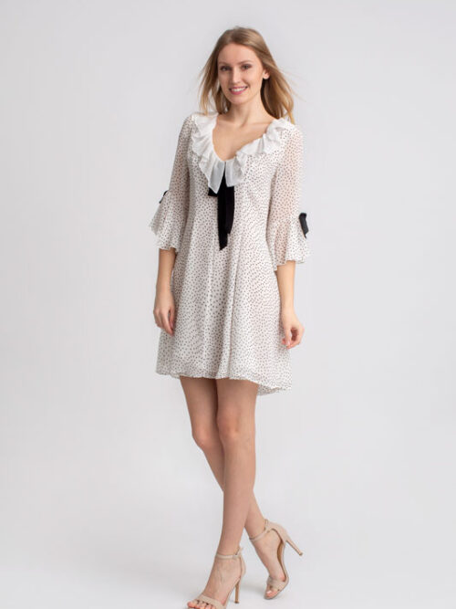 Luxusné bodkované mini šaty BABYLON v bielo čiernej farbe.