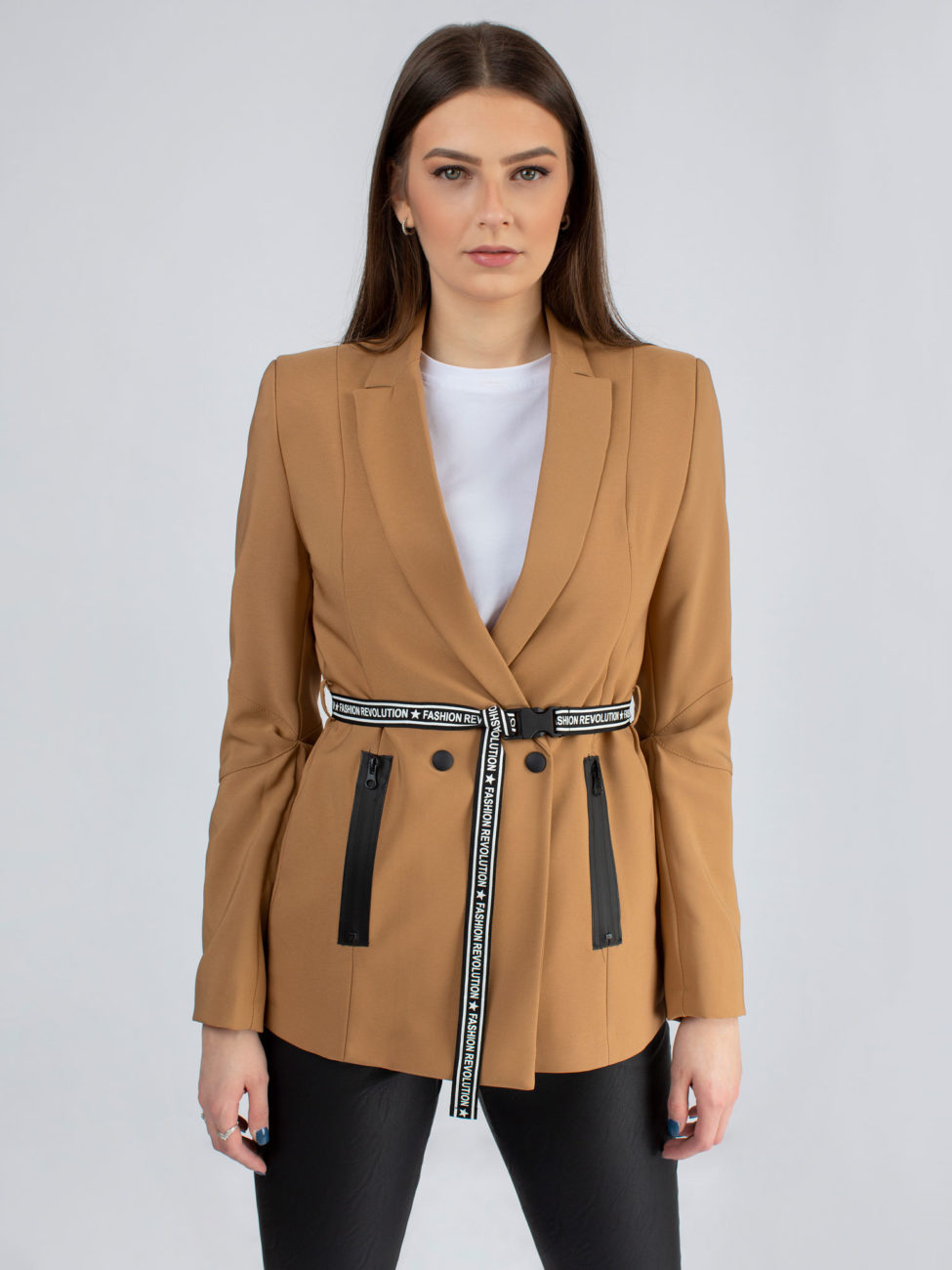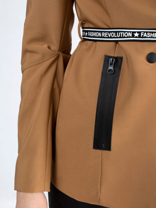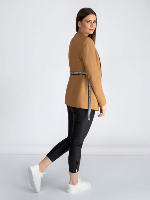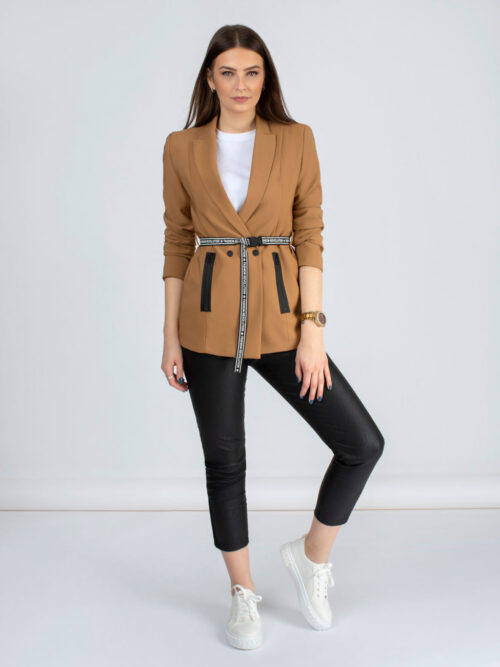 Kvalitné dámske sako rovného strihu s opaskom v béžovej farbe talianskej značky IMPERIAL. Sako má dlhé rukávy a dĺžka saka siaha po zadok. V prednej časti po stranách sa nachádzajú vrecká. Sako je s podšívkou a súčasťou je aj štýlový opasok. Veľmi kvalitne a do detailov prepracovný kúsok, ktorý rozhodne musíš mať!