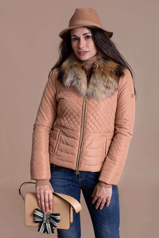 Vetrovka do pása ROBERTA BIAGI zdobená odopínateľnou pravou kožušinou okolo krku. Vhodná na bežné nosenie k nohaviciam, ale pekne sa dá zladiť aj k sukni.