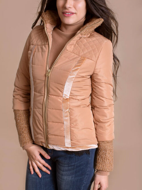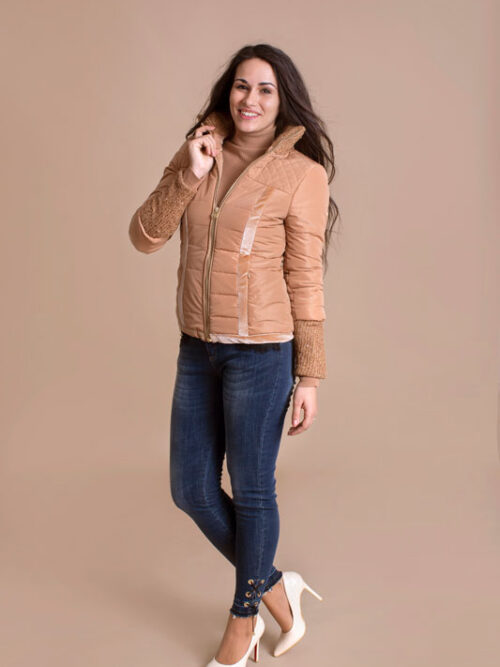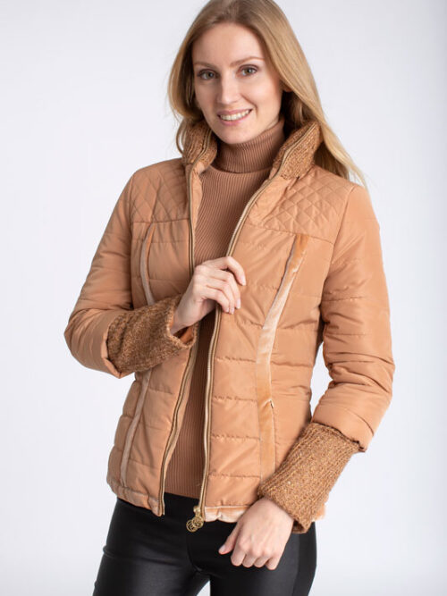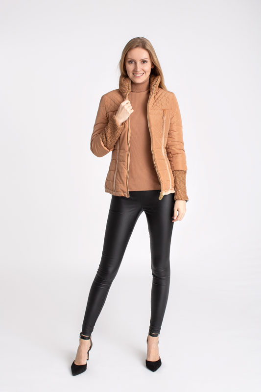 Vetrovka krátka ROBERTA BIAGI má úzky strih a zaujme vás pleteným patentom na rukávoch ako aj pletený stojačik.